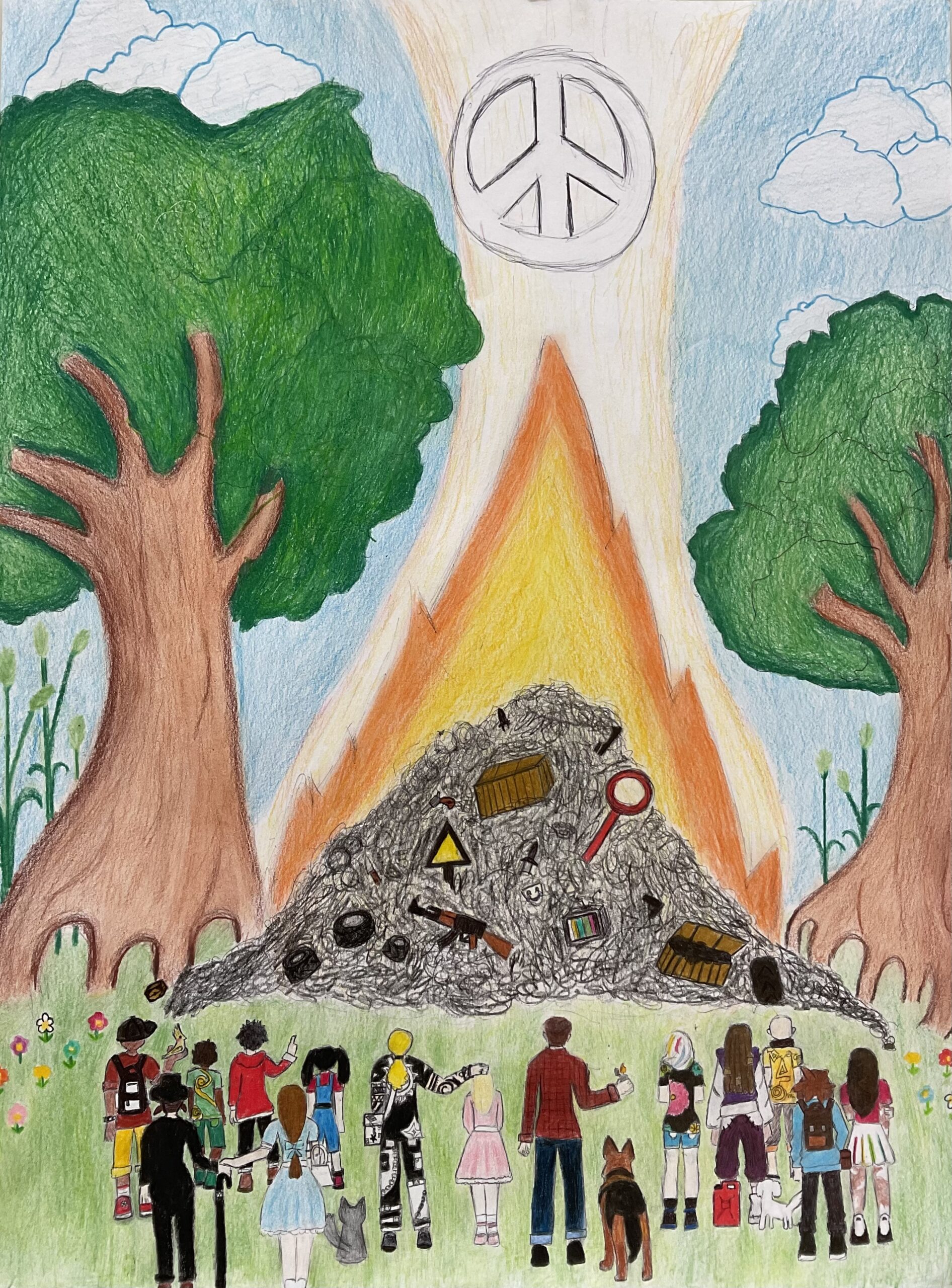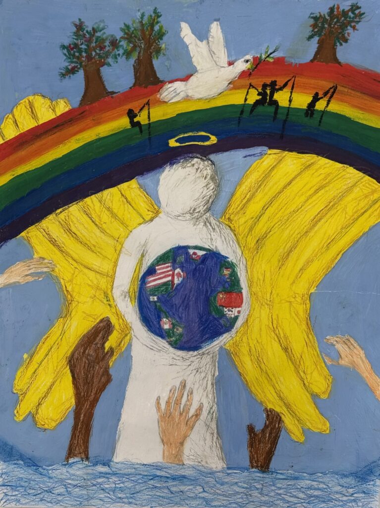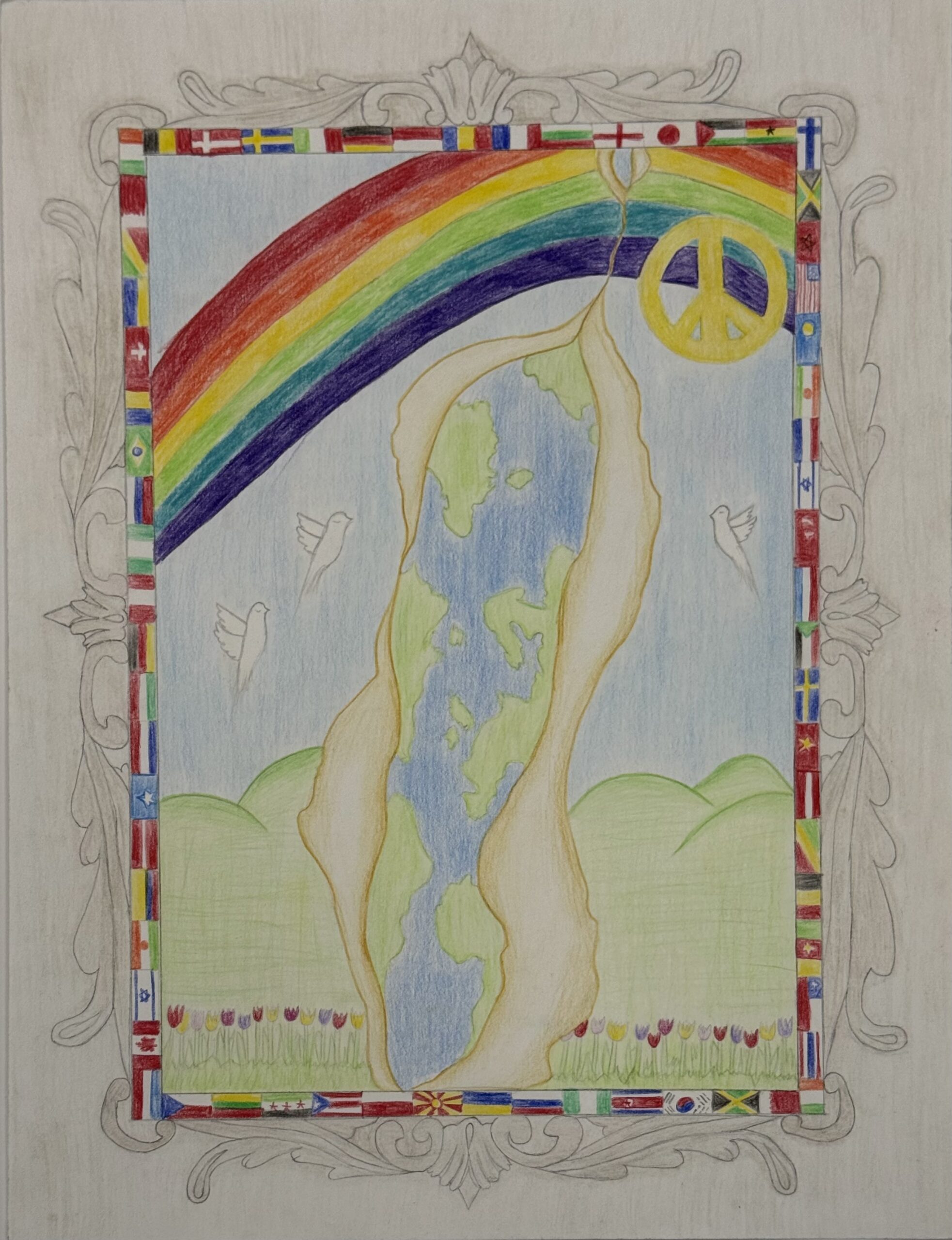 Tetiana Nakonechna ist die Gewinnerin des diesjährigen Friedensplakatwettbewerbs des Lions Clubs International auf regionaler Ebene. Unter dem Motto Miteinander. Einig haben rund 70 Schülerinnen und Schüler der Klassen 7 A, C und E fleißig gezeichnet und gemalt.