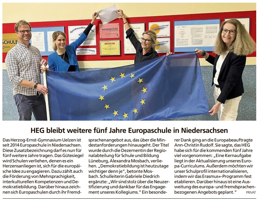 HEG bleibt weitere fünf Jahre Europaschule in Niedersachsen